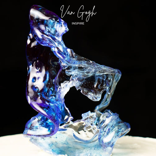 蛋糕頂部以糖藝重現畫中自然擺動的鳶尾花,極具藝術感。